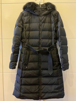 Abrigo entallado de The North Face con relleno de plumón autentico. Costó 400€, esta usado pero sigue siendo muy muy calentito y tiene el detalle de ser entallado. - Capucha con ribete de pelo sintético. - Cintura elástica para un ajuste cómodo. - Diseño acolchado.