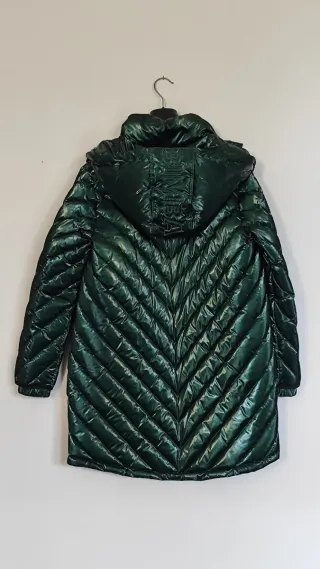 Precioso plumífero de la marca Just Cavalli, perfecto para mantenerte abrigado con estilo. - Diseño acolchado. - Capucha integrada. - Detalle de logo bordado en dorado. - Puños y bajo elásticos. - Talla 40 italiana (36)