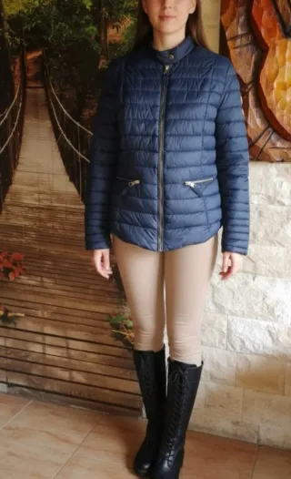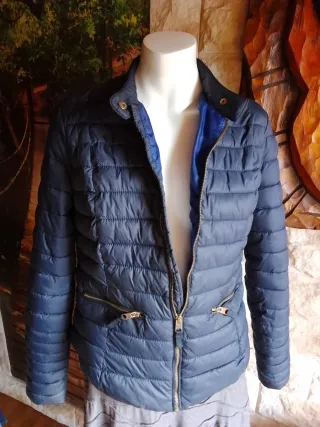 Plumifero Outerwear Collection en azul marino con cierre de cremallera y clip en cuello, bolsillos con cremalleras. Medidas: hombros 42cm, largo 60cm, pecho 46cm, cintura 44cm #mhorgana38m40l -0-