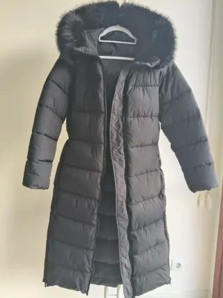 Abrigo plumífero largo con capucha. - Diseño acolchado. - Cierre de cremallera. - Bolsillos laterales con cremallera. Perfecto abrigo para el invierno , largo por debajo de la la rodilla en una estatura como la mia 1,65. Talla 44 Italiana pero seria como una 40/42 . Es super bonito y en muy buen estado . Se hacen envios rapidos . ligero y super versatil 😍