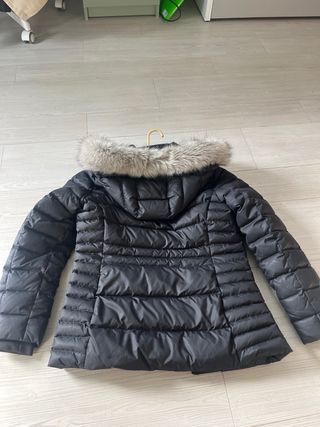 Plumífero acolchado con un diseño moderno y elegante. Costaba 450€ - Capucha con pelo sintético gris. - Cierre frontal con cremallera. - Bolsillos laterales. - Tejido exterior resistente.