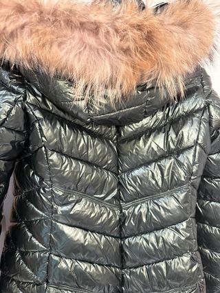 Elegante plumífero con un acabado brillante con capucha y detalle de pelo en la capucha que se puede poner y quitar - Diseño acolchado. - Cierre de cremallera. - Bolsillos laterales. - No se ha puesto nunca - Talla XL pero talla pequeño como una L.