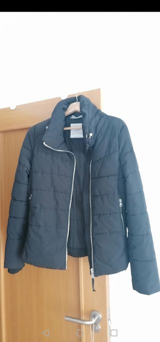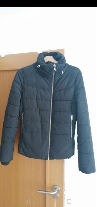 Plumífero color negro, talla S, de Zara. Perfecto estado, entallado y muy cálido y ligero porque son plumas, no es sintético.