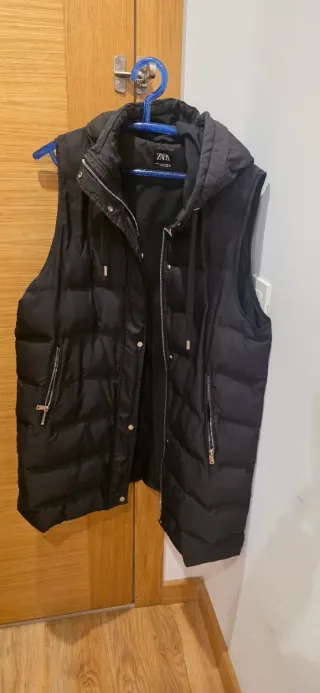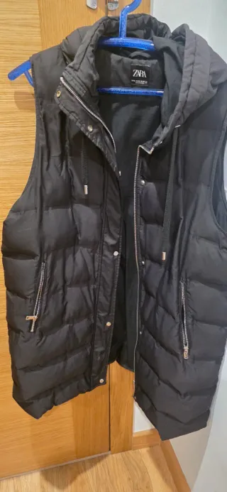 Chaleco acolchado de Zara para mujer. Perfecto estado salvo el pequeño roce que sale en la foto - Diseño sin mangas. - Capucha integrada. - Cierre de cremallera frontal. - Bolsillos laterales con cremallera.