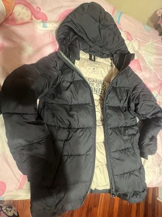 Plumífero azul marino con capucha