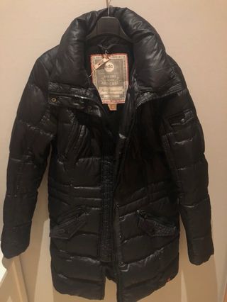 Plumífero acolchado de la marca Bimba y Lola. - Diseño con capucha. - Cierre de cremallera frontal. - Bolsillos laterales con cremallera. Mucho uso. Se nota el deterioro evidente.