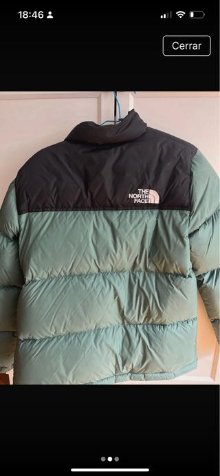 Plumífero de la marca The North Face con un diseño bicolor. - Parte superior en color negro. - Parte inferior en color verde. Talla Xl de niño s de adukto Valido para 12-14 años