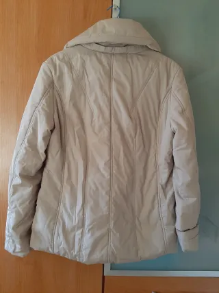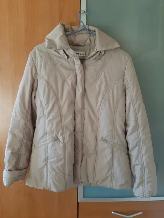 Chaqueta plumífero de color beige, con cuello alto y bolsillos. - Diseño acolchado. - Cierre de cremallera frontal. - Puños elásticos.