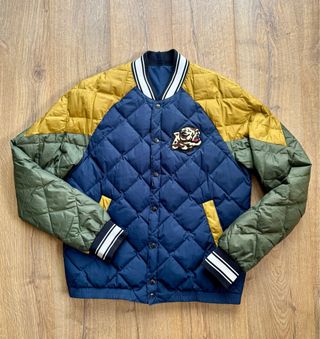 - Chaqueta acolchada Furor Japan - Repleta de patchwork bordado - Estilo deportivo vintage japonés-británico. - Poco uso -Características: • Aislamiento de plumón acolchado ultracálido. • Cierre frontal con cremallera + 4 bolsillos exteriores con cremallera • Logotipos bordados, letras japonesas y parches de las banderas británica y japonesa • Gráficos llamativos en la parte delantera, las mangas y la espalda • Cuello alto con compartimento oculto con velcro para la sudadera • Totalmente forrada con estampado interior de león rojo y escudo de la marca Esta prenda combina influencias deportivas, militares y urbanas para un esti