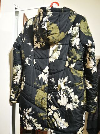 Abrigo acolchado con un llamativo estampado floral. - Diseño acolchado. - Cierre de cremallera. - Capucha integrada.