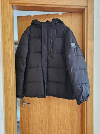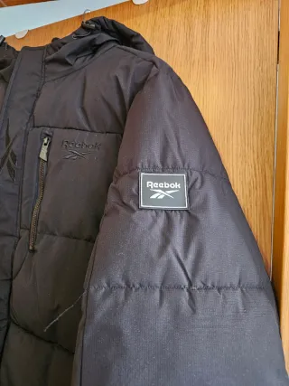 Abrigo plumífero de la marca Reebok, completamente nuevo. - Diseño acolchado. - Cierre de cremallera. - Bolsillo con cremallera en el pecho. - Parche con logo en la manga.
