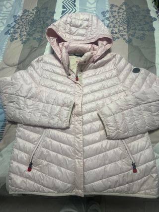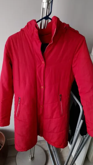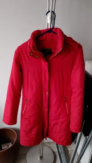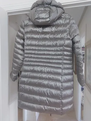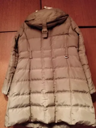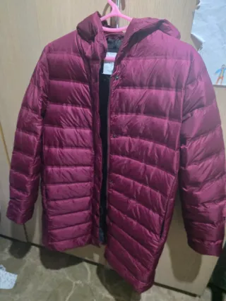 Parka tipo plumífero con capucha y bolsillos, no pesa nada, es superligera, es talla S, pero da bastante talla, vale como M, e incluso L. - Diseño acolchado. - Cierre de cremallera frontal. - Largo hasta la rodilla.