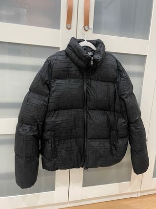 Plumífero acolchado con un diseño moderno y llamativo. - Estampado integral con el logo de la marca. - Cuello alto para mayor protección. - Cierre de cremallera frontal. - Bolsillos laterales con cremallera.
