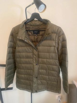 Chaqueta plumífero ligera de Cortefiel Woman en color verde caqui. Diseño acolchado con cuello alto y cierre con cremallera/broches, muy cómoda para entretiempo y días fríos Sin abultar. Queda genial con vaqueros o pantalón negro, y se puede llevar tanto casual como más arreglado. Talla: 38 (equivale aprox. a M). Estado: muy buen estado, sin manchas ni desperfectos visibles (ver fotos de detalle). #cortefiel #plumifero #plumas #chaqueta #acolchado #verdecaqui #kaki #entretiempo #abrigo #woman #talla38 #tallaM #basico #outerwear #invierno