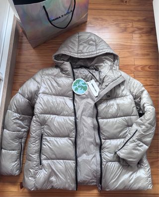 Plumifero corto acolchado de bimba y lola con capucha, nuevo con la etiqueta puesta. Talla L ✅Perfecto estado y cremalleras funcionales 🧵Cierre de cremallera. 🧵Bolsillos laterales con cremallera. 🧵Detalle de logo en la parte frontal. 🏷️Nuevo con etiqueta 📏Mediadas: Largo chaqueta 68cm/ ancho hombros 48cm/ largo mangas 60cm 🎨Color crema metalizado 🚚Envío rápido 24/48h