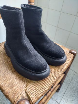 Botas de mujer con un diseño elegante y cómodo. - Exterior de ante. - Forro interior de pelo sintético para mayor calidez. - Cierre de cremallera lateral.