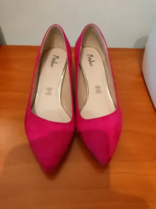 Elegantes zapatos de tacón de la marca Menbur en un vibrante color rosa. Perfectos para añadir un toque de estilo a cualquier ocasión. - Diseño de punta fina. - Tacón de aguja fino.