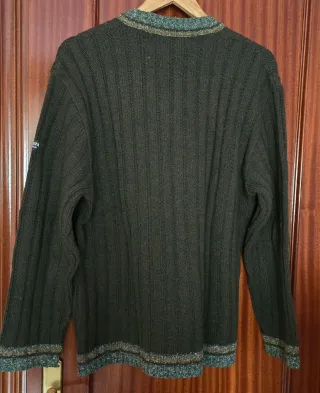 Jersey de punto con cremallera en el cuello. - Diseño bicolor con franja lateral. - Cuello alto acanalado. - Puños y bajo elásticos.