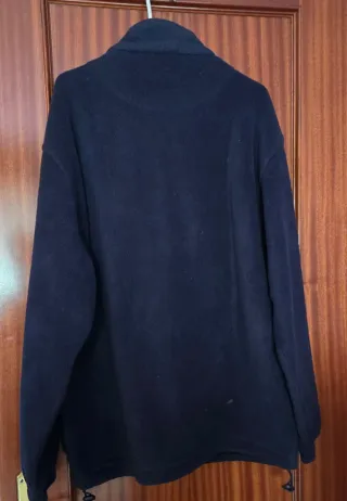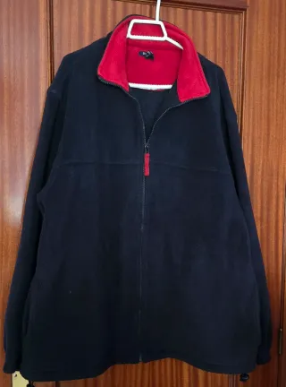 Chaqueta polar con cremallera frontal y cuello alto. - Material polar suave. - Combinación de colores azul y rojo. - Cierre de cremallera. - Cuello forrado en rojo.