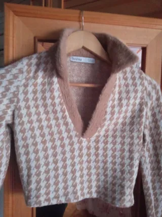 Jersey corto de Bershka con un diseño de pata de gallo.Puesto una vez - Escote pronunciado en pico. - Cuello y puños con acabado suave. - Tejido de punto cómodo.