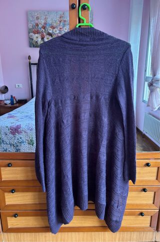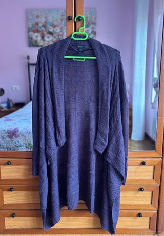 Chaqueta larga y fina de lana, perfecta para añadir una capa extra de abrigo. - Diseño abierto. - Tejido de punto con textura. - Manga larga. Las fotos salen un poco oscuras. El color real de la chaqueta se aprecia bien en las dos últimas fotos