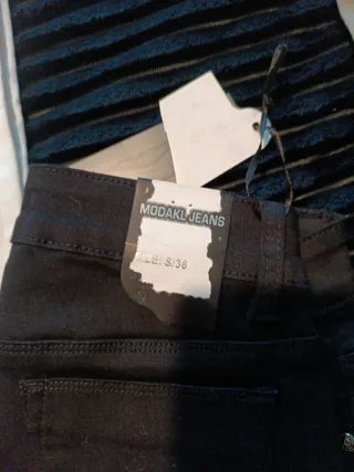 Vaqueros de tiro alto en color negro. Nuevo a estrenar con etiqueta elástico cómodo pitillo - Marca: MODAKL JEANS - Talla: S/36