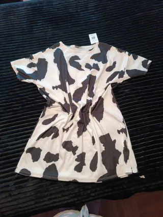 Vestido con un llamativo estampado de vaca. Tela fría no arriga ni marca nuevo son estrenar - Diseño de manga corta. - Corte holgado y cómodo.
