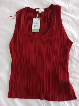 Top de punto en color granate. Acanalado. Escote redondo.