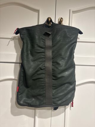 Bolso bandolera de color verde, ideal para llevar tu ordenador o para el trabajo. Cuenta con varios compartimentos y un diseño funcional. - Correa ajustable. - Cierre con cremallera y hebillas. - Bolsillo frontal con cremallera. - Etiqueta de marca visible.