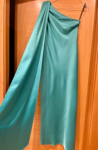 Vestido midi de The-Are con un diseño asimétrico (para boda, bautizo, comunión, graduación...). Tiene una sola puesta.
