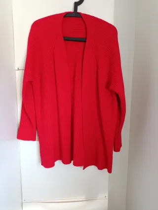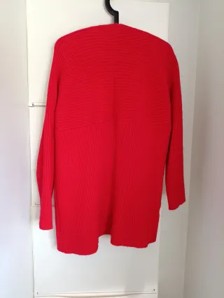 Chaqueta de punto grueso en color rojo vivo - Diseño abierto. - Manga larga. - Diseño recto