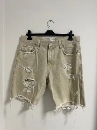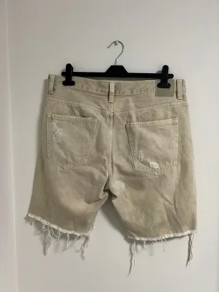 Pantalón corto talla 42. - Color beige. - Diseño con rotos y bajos deshilachados.