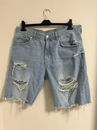 Pantalones vaqueros cortos de estilo desgastado y con rotos. Talla 42 / 44 - Diseño moderno con rotos. - Acabado deshilachado en el bajo.