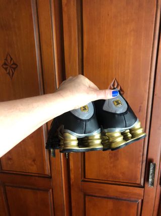 Zapatillas Nike Shox en color negro y dorado. Ideales para un estilo deportivo y moderno. SIN ESTRENAR Talla 42