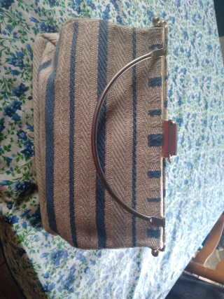 Bolso vintage rayas beige y azul