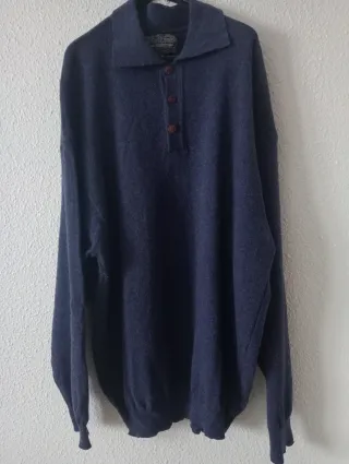 Jersey de manga larga con cuello tipo polo y botones. Mide: largo 82..largo manga 65 Hombro-hombro 64 Axila -axila 65 - Cuello con solapa. - Cierre de tres botones. - Puños y bajo de canalé.