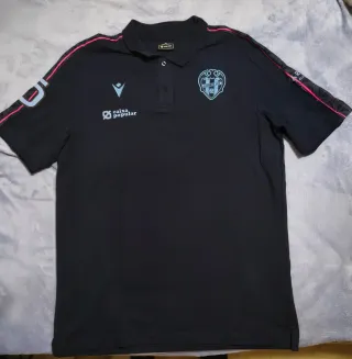 Polo oficial del Levante Unión Deportiva. - Diseño moderno con detalles en las mangas. - Escudo del club y logo de la marca visibles. - Cuello tipo polo con botones. Solo una puesta.