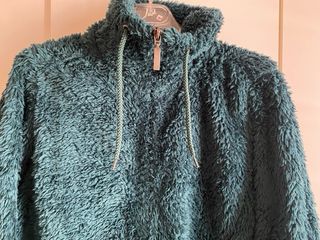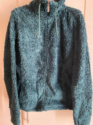 Prenda de forro polar de color verde, perfecta para mantenerte abrigado. - Material suave y cálido. - Diseño con cremallera. - Cordones ajustables en la capucha.