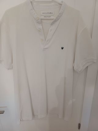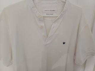 Polo de manga corta de la marca Zara. - Cuello mao con botones. - Pequeño escudo bordado en el pecho.