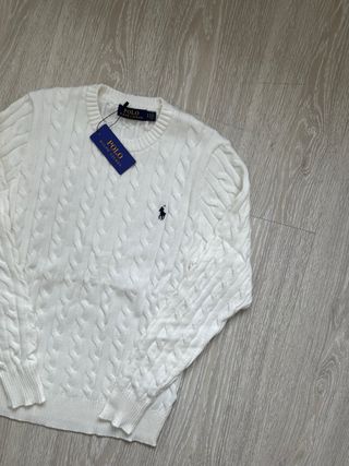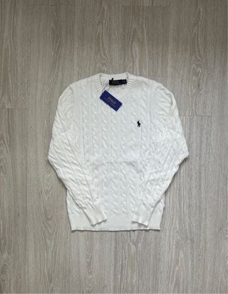 Sweater Polo Ralph Lauren cable knit jumper in white, size S. Classic and elegant design featuring the iconic embroidered Polo logo on the chest. ✔️ Polo Ralph Lauren ✔️ Size S ✔️ Timeless cable knit design ✔️ Made from 100% premium cotton ✔️ Soft, breathable and comfortable ✔️ Excellent condition A versatile and stylish essential that works perfectly for smart-casual or everyday outfits. Easy to match and always in style. 📦 Fast shipping – ready to send.