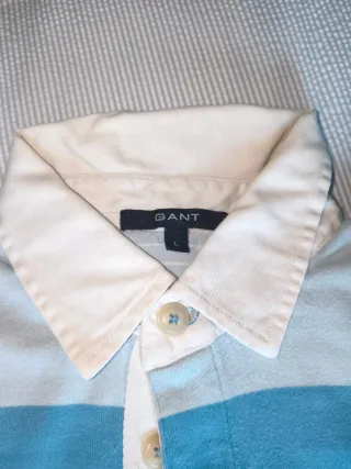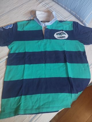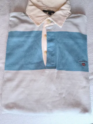 Polo de manga larga con un diseño de rayas clásico. Talla XL pero equivale a una L en otras marcas. usado una sola vez - Cuello blanco. - Puños blancos. - Cierre de botones en el cuello.