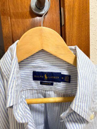 Camisa de manga larga con cuello abotonado y el icónico logo del caballo bordado en el pecho. - Diseño de rayas verticales. - Cierre de botones. - Cuello con botones.