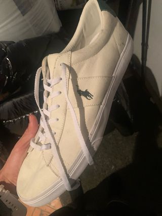 Zapatillas de lona de la marca Polo Ralph Lauren. - Color blanco con detalles en verde. - Logo del caballo bordado en el lateral.