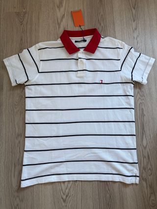 Polo de manga corta con un diseño a rayas. - Cuello y puños en contraste. - Pequeño logo bordado en el pecho. - Original - Está nuevo - Talla XL pequeña, es como una L
