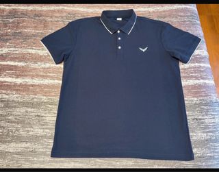 Polo de manga corta con un diseño moderno y deportivo. - Combinación de colores azul marino y azul real. - Detalles en blanco y rojo en el cuello y la banda lateral. - Escudo bordado en el pecho.