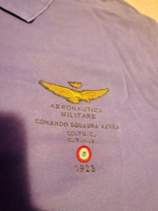 Polo de manga corta de la marca Aeronautica Militare. Presenta un diseño clásico con cuello y detalles en contraste. - Cuello tipo polo con botones. - Mangas con ribete. - Logo y emblemas en el pecho y manga.