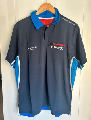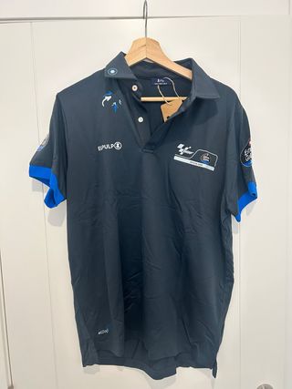 Polo oficial del equipo Moto GP Estrella Galicia. - Color negro con detalles en azul. - Logo de Estrella Galicia en la manga. - Diseño deportivo.