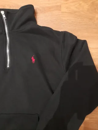 Solo hago envíos❗️❗️ Sudadera de Polo Ralph Lauren en color negro con media cremallera. - Logo del caballo bordado en rojo. - Bolsillo tipo canguro. - Cuello alto.