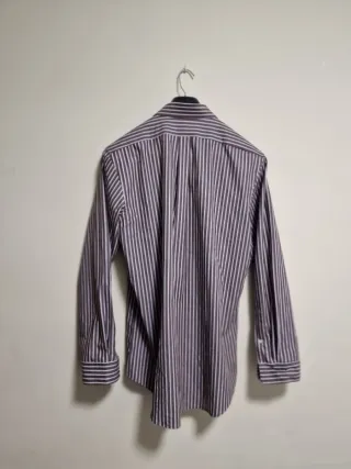 Camisa de manga larga con un diseño de rayas verticales. - Cuello clásico. - Cierre de botones. - Pequeño logo bordado en el pecho.