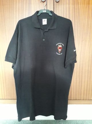 Polo negro de manga corta, con el logo de la International Premier Cup bordado en el pecho. - Cuello clásico con 3 botones. - Logo de Nike en la manga. - Composición: 100% algodón. - Talla muy grande, es una XL o casi una XXL.